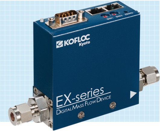日本科賦樂KOFLOC 科賦樂 全金屬數(shù)字質(zhì)量流量計 EX-550 系列 它是一款全金屬MFC,配備高速繞線傳感器,具有出色的內(nèi)部開發(fā)穩(wěn)定性。 SEMI兼容106mm(可選擇124mm)表面,RS485通信是標(biāo)準(zhǔn)配置。 高精度腐蝕性氣體兼容產(chǎn)品,1.0%SP。 通過切換旋轉(zhuǎn)開關(guān),可以使用主機中登記的氣體類型。