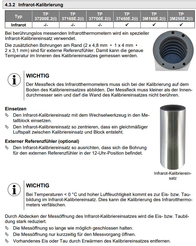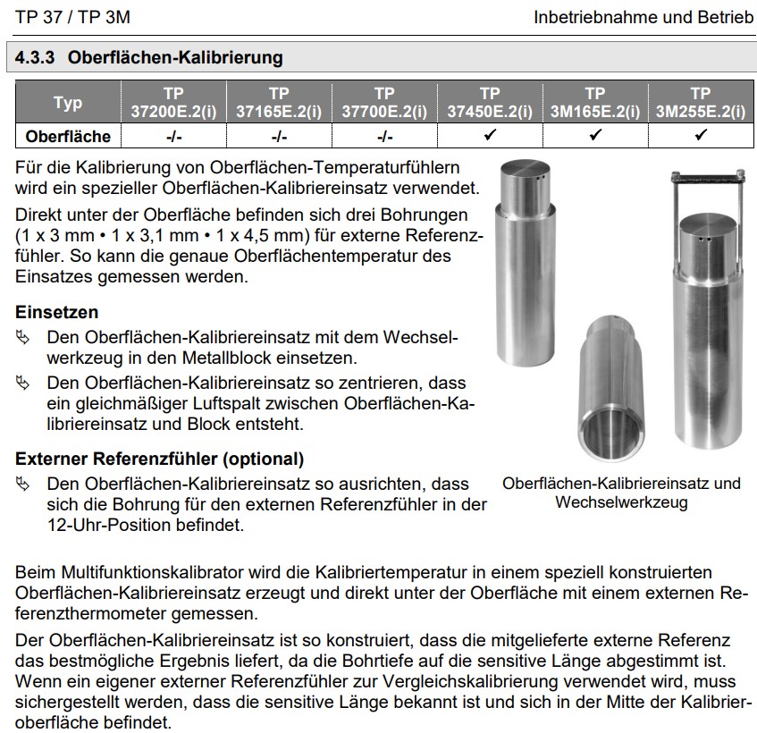 檢測時需要一個單獨(dú)的溫度測量儀器。我們建議使用我們的TT38048溫度測量儀。檢測是通過比較外部測量儀器所顯示的溫度和校準(zhǔn)儀所顯示的金屬塊溫度進(jìn)行的。