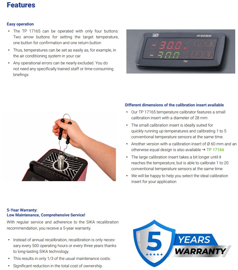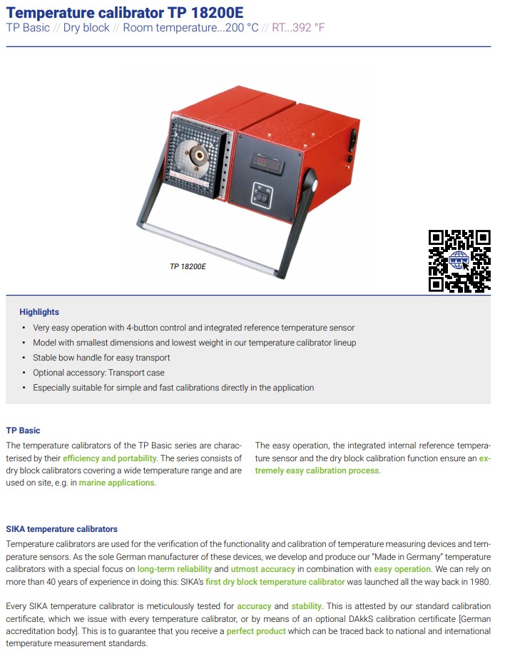 SIKA溫度校準(zhǔn)儀TP17000系列已成為上述所列行業(yè)技術(shù)人員的標(biāo)準(zhǔn)儀器。