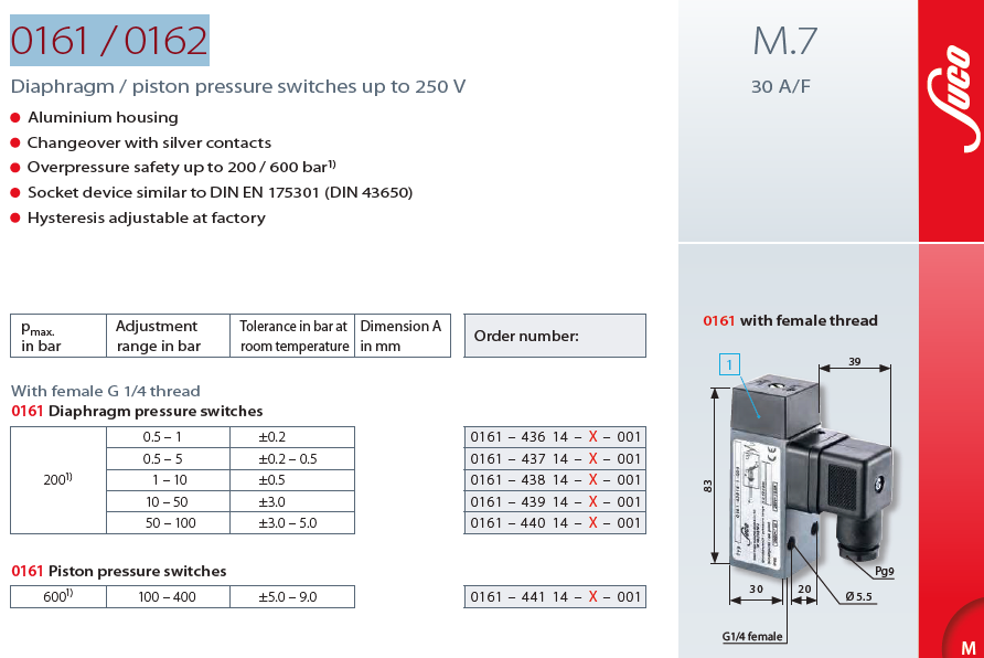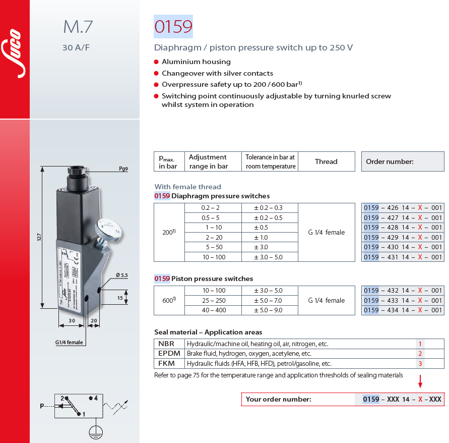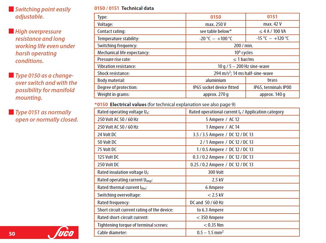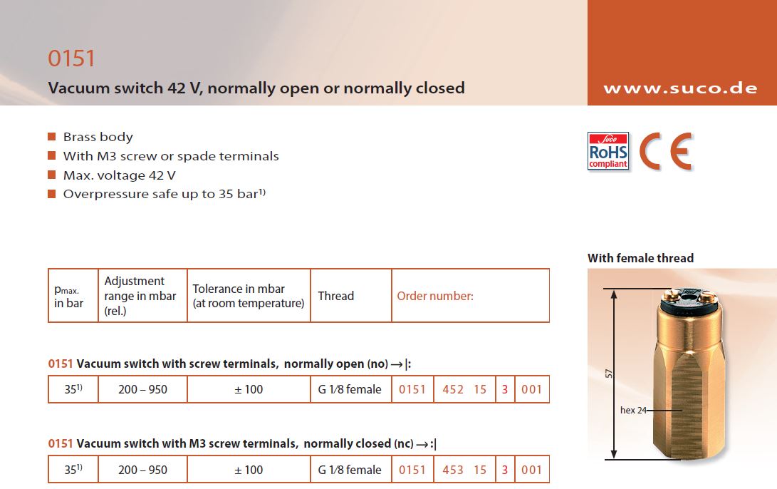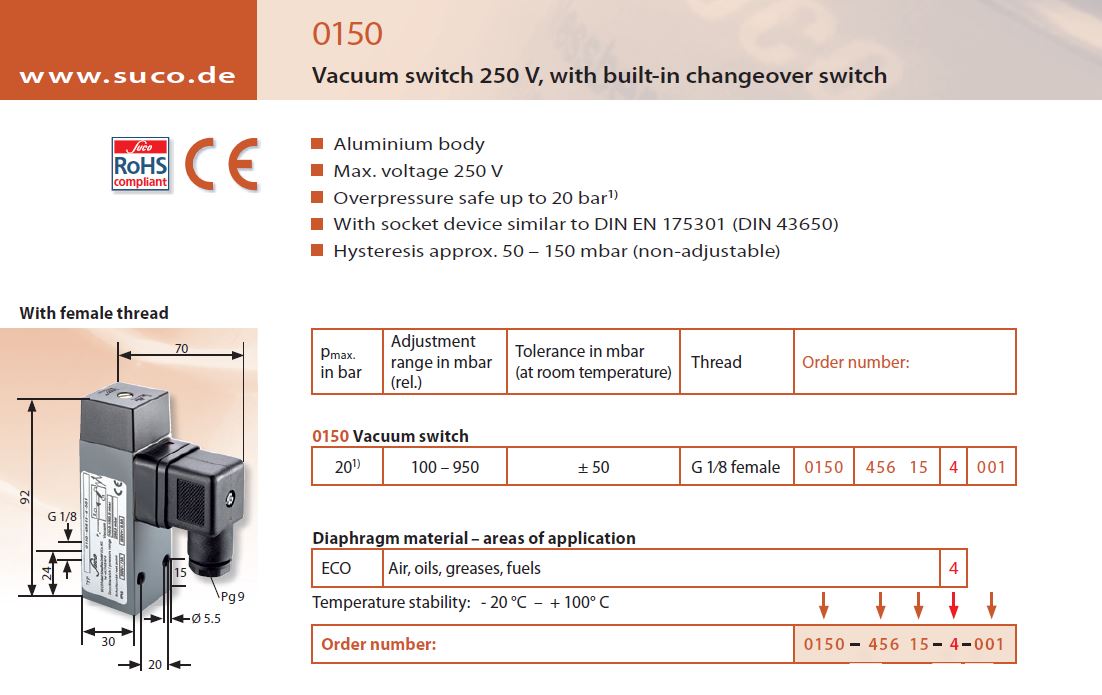 SUCO壓力開關(guān)0159系列其他型號(hào):