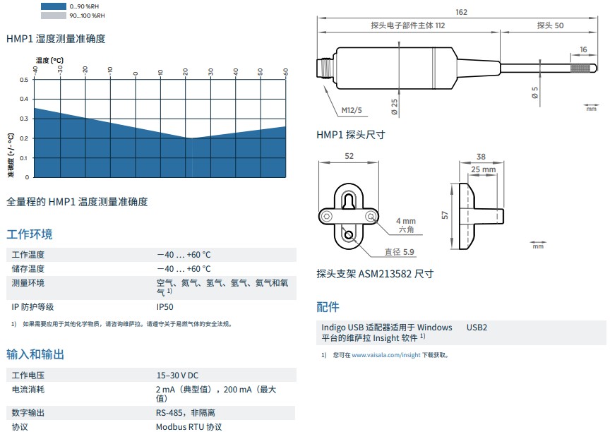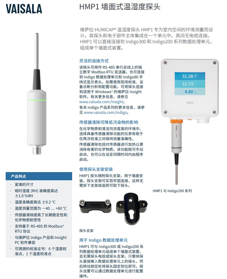 維薩拉 HUMICAP? 濕溫度探頭 HMP1 適合進(jìn)行環(huán)境測量,還可以連接到 Indigo200 數(shù)據(jù)處理單元以組成一體式壁掛裝置。HMP1 的微型 5 毫米直徑傳感器響應(yīng)速度快、測量穩(wěn)定性強(qiáng)。