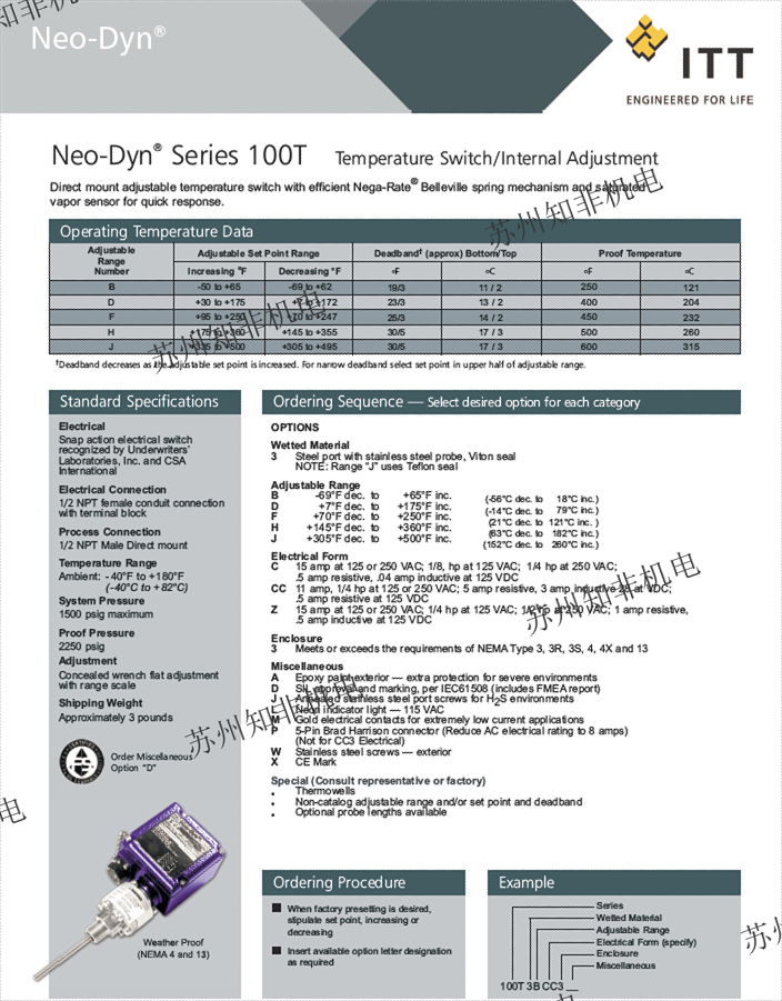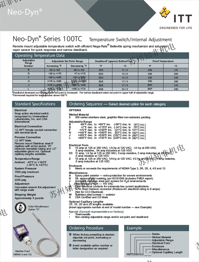 美國ITT開關(guān)ITT壓差開關(guān)ITT溫度開關(guān)ITT一級代理商-蘇州知非機電設(shè)備有限公司