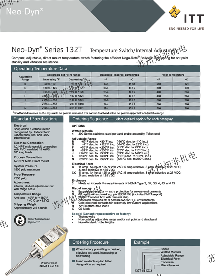 ITT壓力開關(guān)132T4S409-003、132T4S409-004、