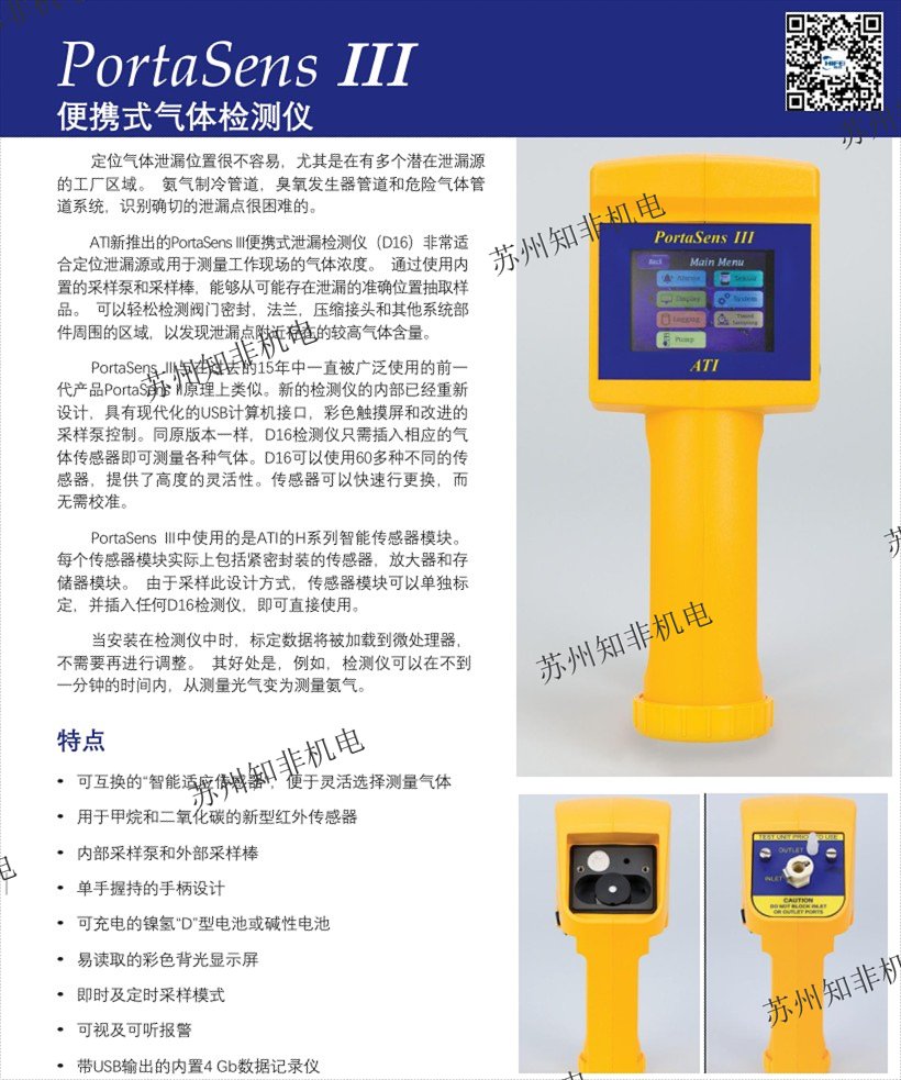 立即訂購美國ATI D16 PortaSens III 便攜式氣體檢漏儀工業(yè)備件,體驗蘇州知非機(jī)電設(shè)備的服務(wù)!