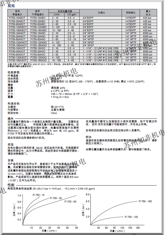 1.流量: 0.1 - 150 L/min,0.03 - 40 US gpm