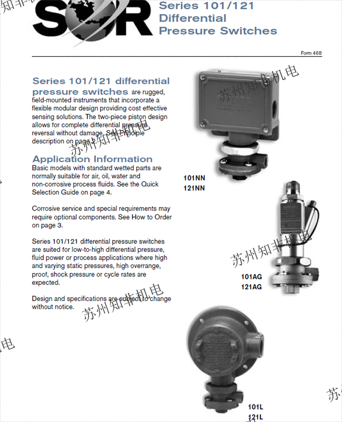 SOR壓力開關(guān)101NN-K3-N4-CIA壓差開關(guān)