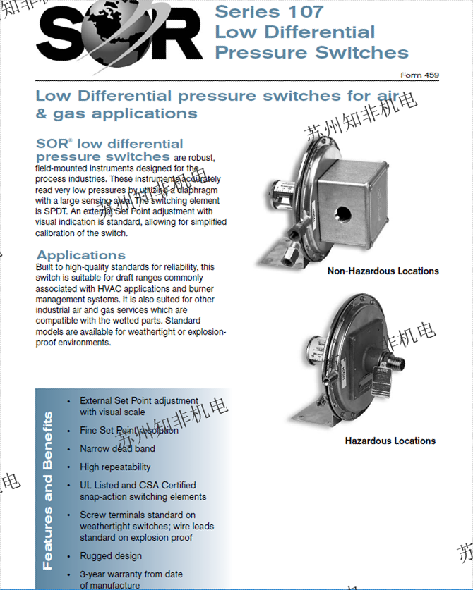 美國SOR差壓開關(guān) 101NN-K45-N4-C1A 索爾SOR,美國SOR差壓開關(guān)101NN-K45-N4-C1A,美國SOR開關(guān)101NN-K45-N4-C1A美國SOR中國代理商-蘇州知非機(jī)電設(shè)備有限公司 139