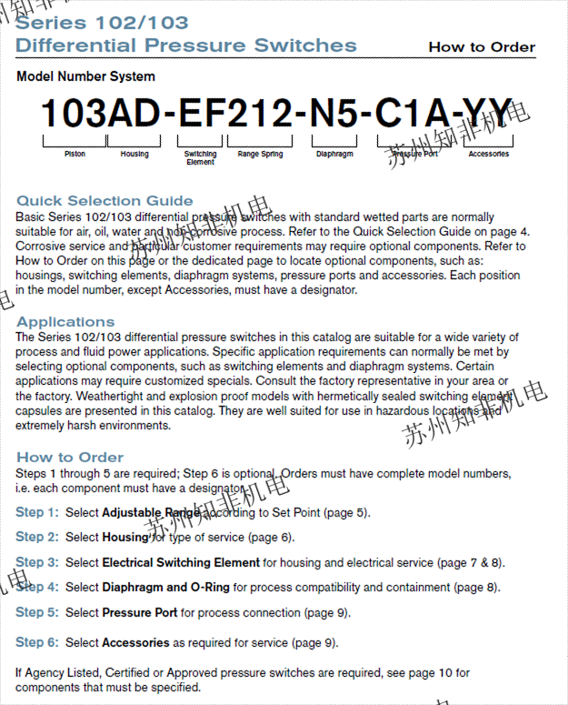 SOR壓力開關(guān)產(chǎn)品型號