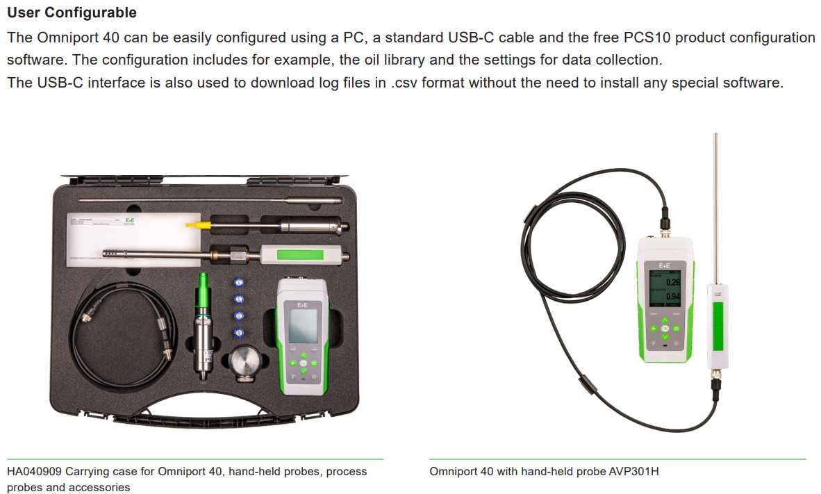 E+E Elektronik公司推出的新一代測(cè)量設(shè)備Omniport 40,是款久經(jīng)考驗(yàn)的手持式測(cè)量設(shè)備。該設(shè)備具有多種測(cè)量選項(xiàng),多可測(cè)量七個(gè)參數(shù),操作使用方便高效。Omniport 40特別適用于設(shè)備維護(hù)、過(guò)程監(jiān)控或售后維修等領(lǐng)域。Omniport 40 集成了油品數(shù)據(jù)庫(kù)和強(qiáng)大的數(shù)據(jù)記錄功能,又兼具操作方便靈動(dòng),是現(xiàn)場(chǎng)作業(yè)或維護(hù)工作中高要求應(yīng)用的理想選擇。