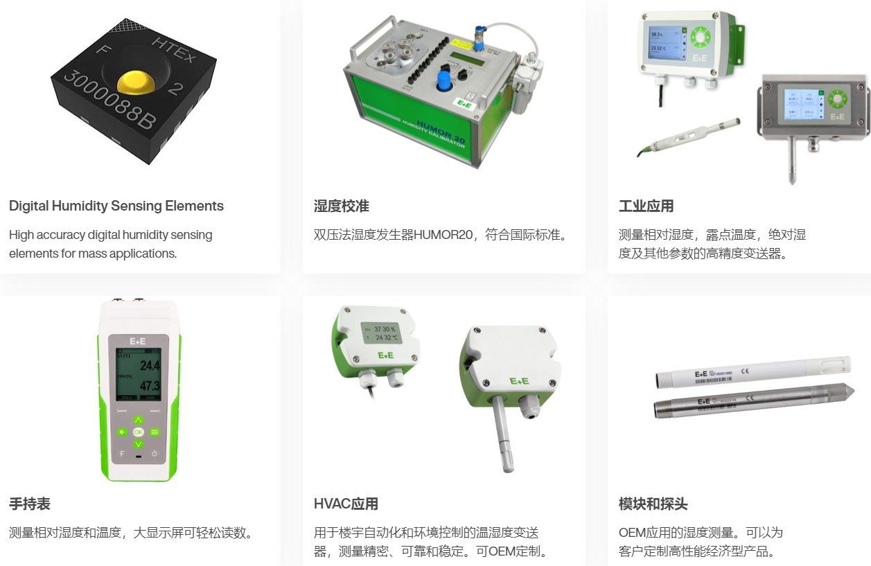 完美滿足各種測(cè)量需求:濕度傳感器和變送器根據(jù)應(yīng)用和行業(yè)的不同要求進(jìn)行設(shè)計(jì),E+E 提供的產(chǎn)品組合。