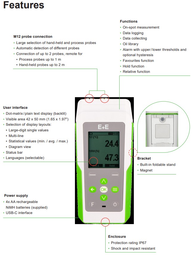 奧地利原裝進(jìn)口E+E益加義 Elektronik總部位于奧地利,是一家專注于高精度濕度傳感器、手持式測(cè)量?jī)x器和數(shù)據(jù)記錄儀研發(fā)的制造商。我們的產(chǎn)品能提供8個(gè)基本參數(shù)的精密測(cè)量,風(fēng)速、二氧化碳(CO2)、濕度、露點(diǎn)儀、流量、油中水分、壓差和溫度。同時(shí),E+E的濕度產(chǎn)品型號(hào)多樣,能服務(wù)于不同領(lǐng)域客戶的需求。我們先進(jìn)的測(cè)量?jī)x器和設(shè)備可以幫助客戶優(yōu)化生產(chǎn)流程、減少停機(jī)時(shí)間,具備良好的測(cè)量可靠性和長(zhǎng)期穩(wěn)定性。
