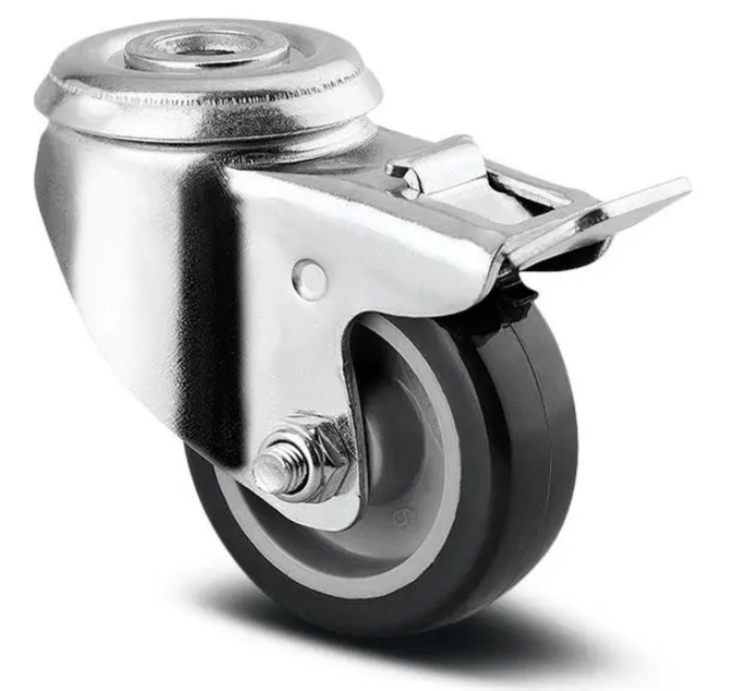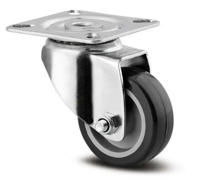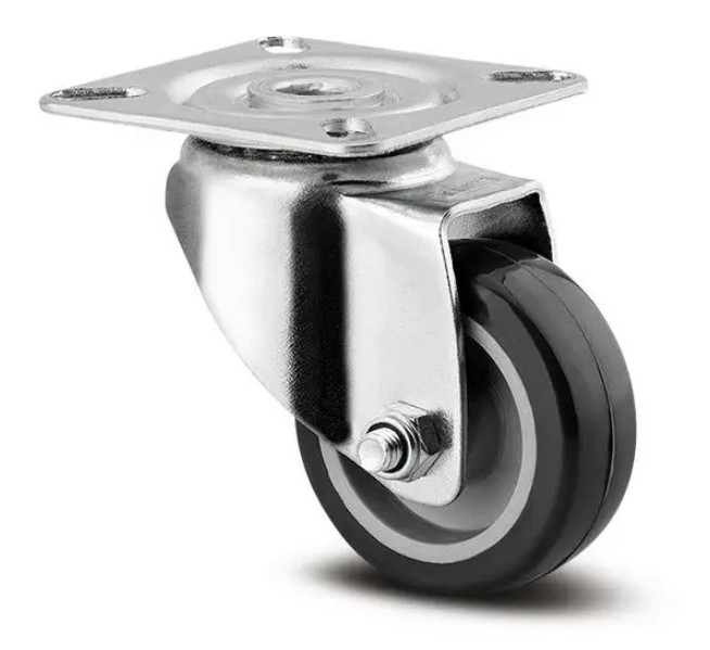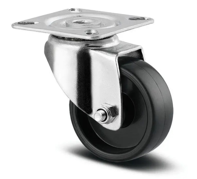 旋轉(zhuǎn)腳輪, 壓制鋼制輪架,電鍍鋅鉻,雙滾珠軸承旋轉(zhuǎn)頭, 螺栓孔.聚丙烯制輪心