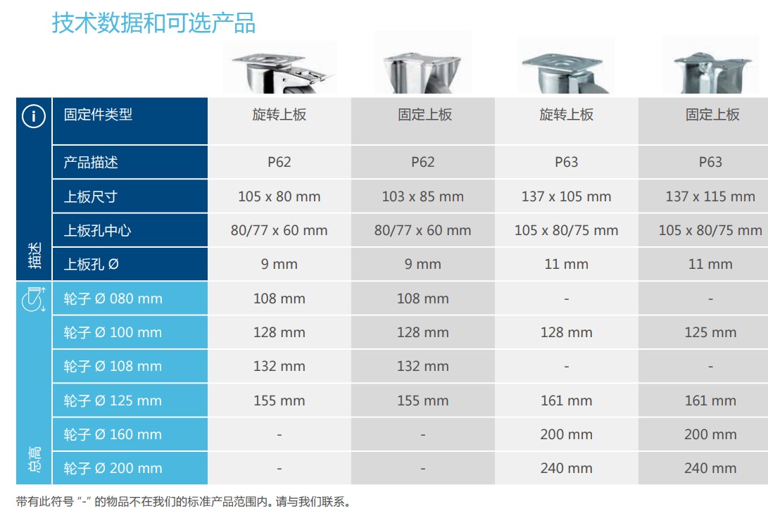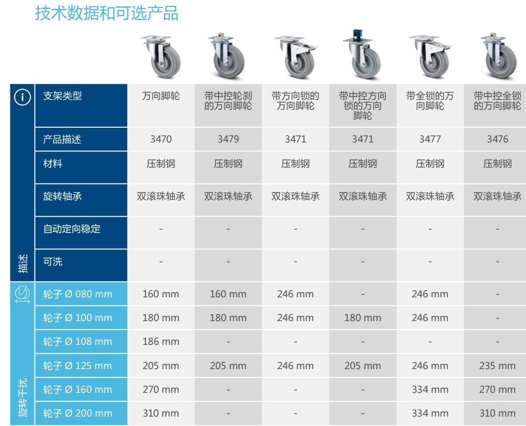 德國TENTE 3470UFR100P62 blue腳輪技術(shù)參數(shù):