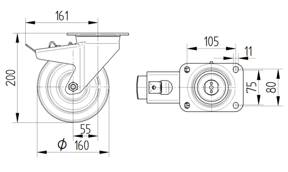 ZETA 4687ITP160P63 Flat萬向腳輪帶剎車