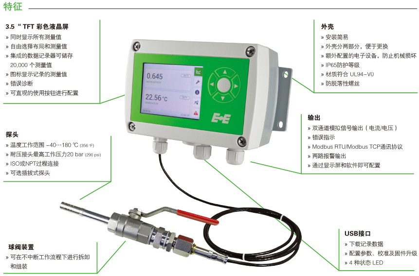 MOP301 探頭配備了 E+E 的濕度敏感元件,具有優(yōu)異的長期穩(wěn)定性和抗污染能力。