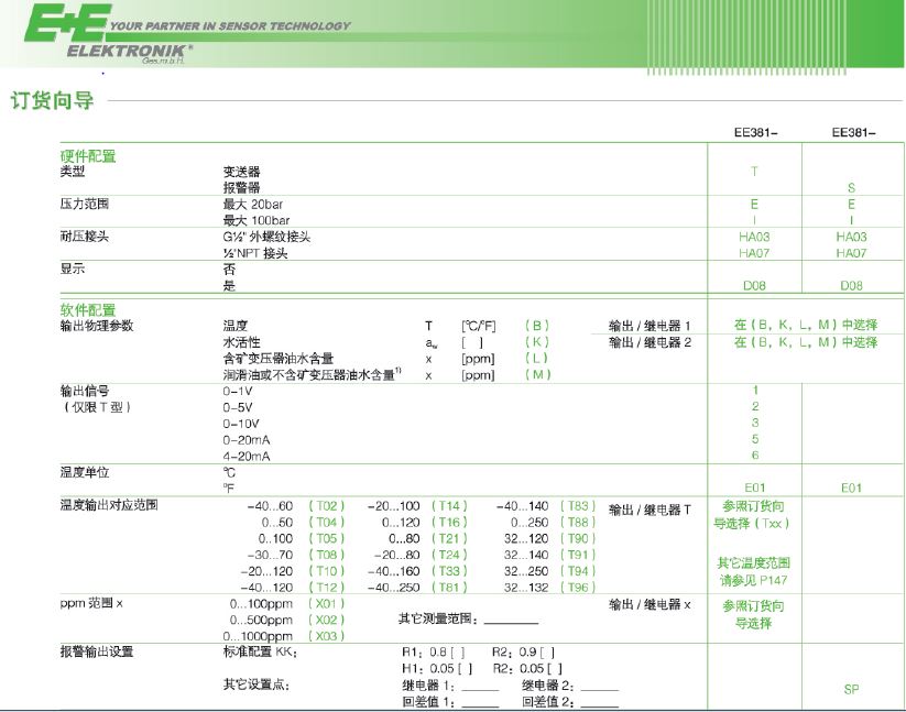 EE300Ex-M3A6HS2 T1D0E2K0L70PA0EX3MA2SAL-40SAH140 EE381可測量水活性和溫度,同時也可計算出變壓器油、潤滑油、液壓油和柴油中的水含量值。