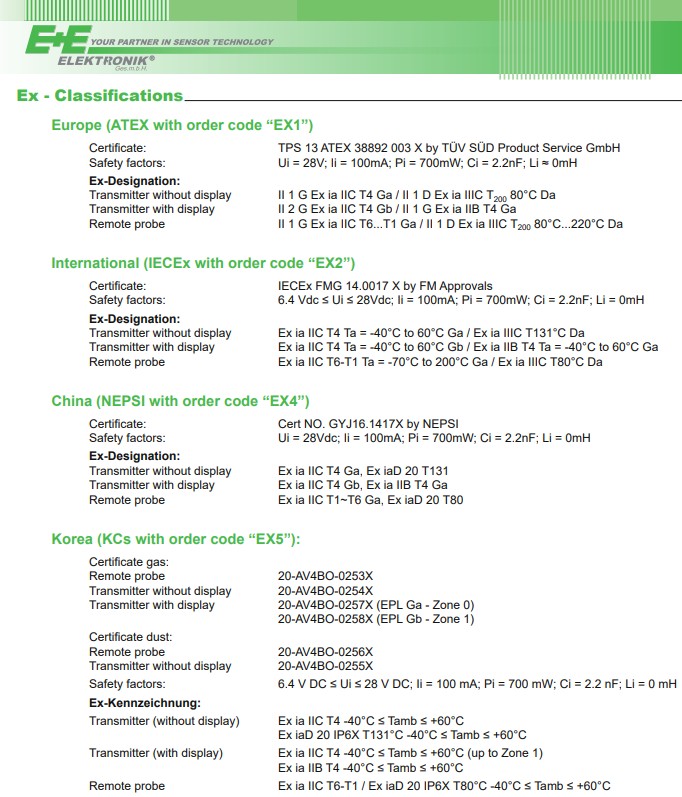 EE300EX是一款專為應用在危險場合設計的本安型防爆溫濕度變送器。滿足歐洲(ATEX)、國際(IECEx)China(NEPSI)和美國/加拿大(FM)規(guī)范對現(xiàn)場工作儀表的本安防爆要求。因此EE300EX可以在危險的粉塵區(qū)或可燃性氣體環(huán)境中工作.
