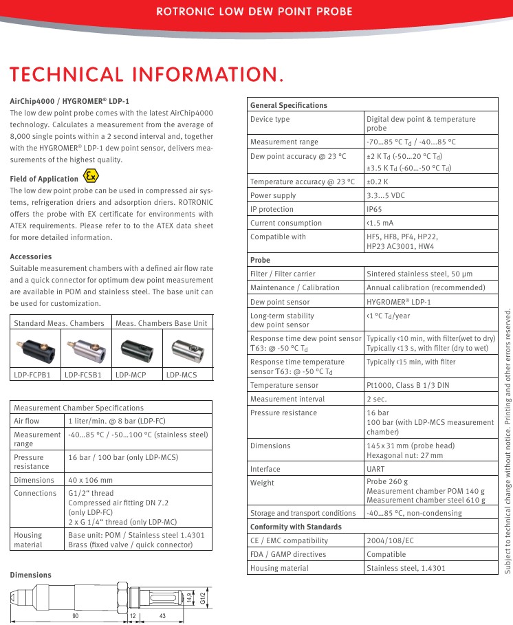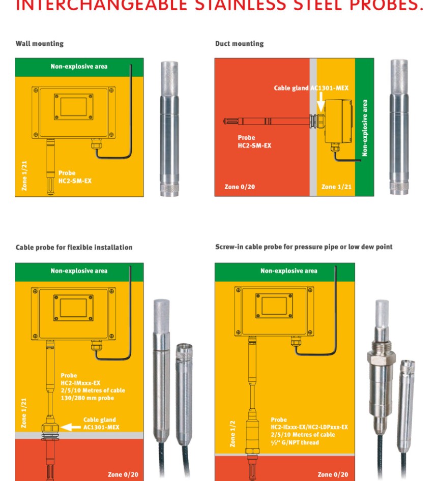 低溫露點(diǎn)儀探頭可用于壓縮空氣系統(tǒng),冷凍干燥機(jī)、吸附干燥機(jī)。Rotronic提供的探頭帶有EX證書,滿足ATEX要求。