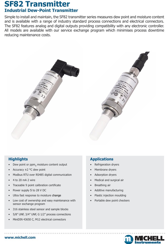 Michell SF82 Dew-Point Transmitter for Compressed Air 英國MICHELL/瑞士ROTRONIC代理商-蘇州知非機(jī)電設(shè)備有限公司