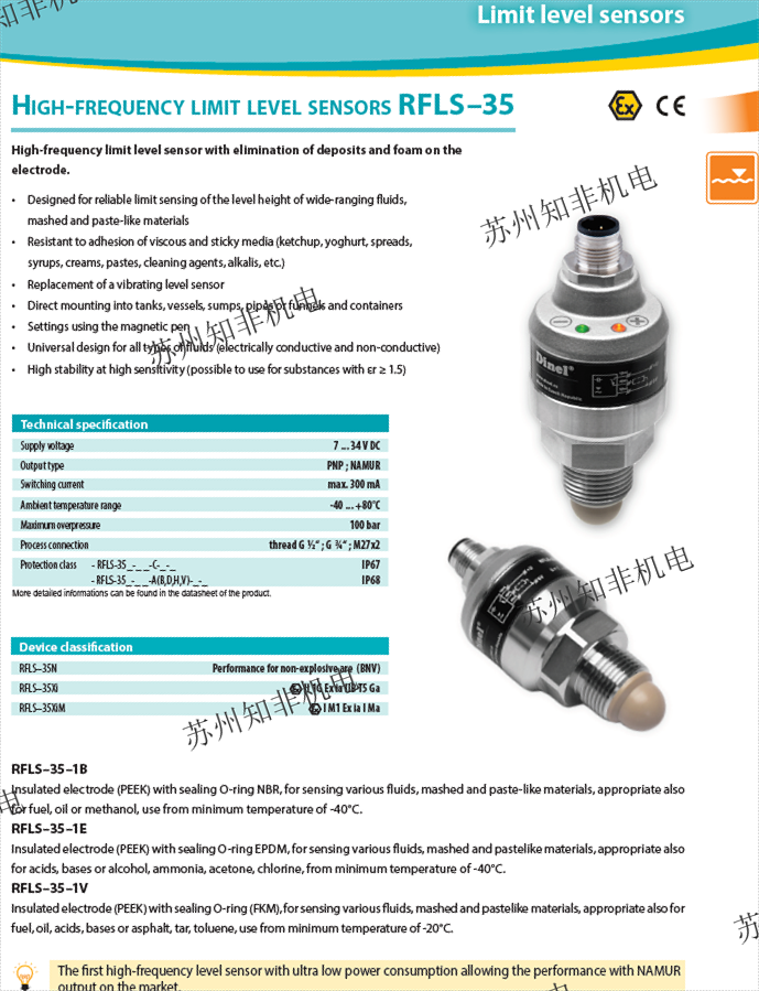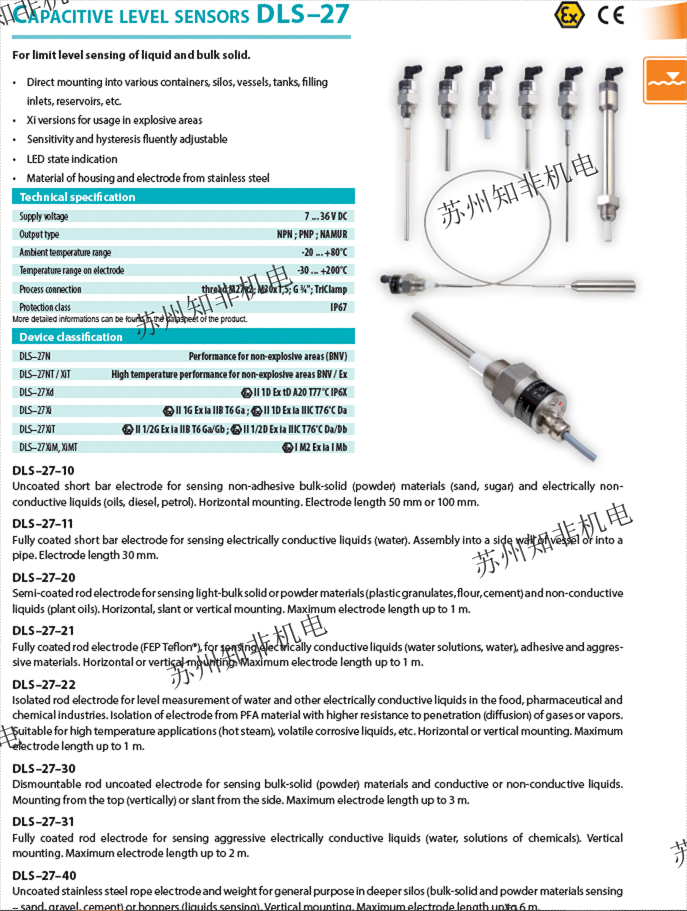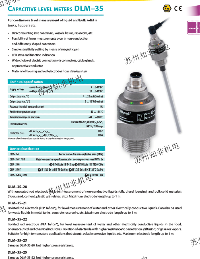 ?DLM-35N-22-G1-I-C-E1500?:具備電容式測量原理,適用于液體、散裝固體及糊狀材料連續(xù)測量,支持防爆型號(xi/Xt)和防塵型號(xd/xdt)。 ?