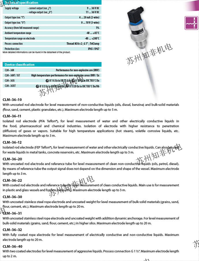 歐洲進口 DINEL CLM-36N-12-G-I E200 電容式液位傳感器