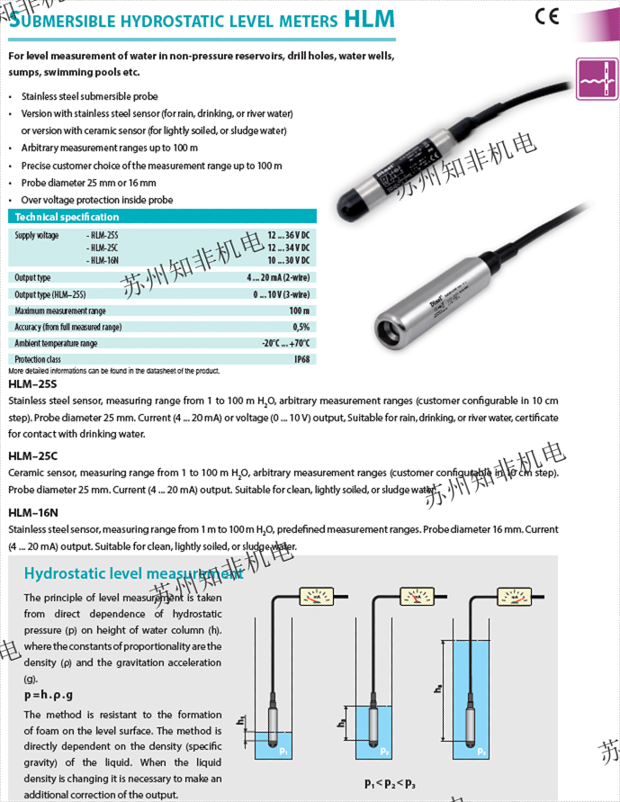 捷克Dinel靜壓式液位傳感器該變送器利用液體靜壓力的測量原理工作,它一般選用硅壓力測壓傳感器將測量到的壓力轉換成電信號,再經放大電路放大和補償電路補償,后以4~20mA或0~10mA電流方式輸出