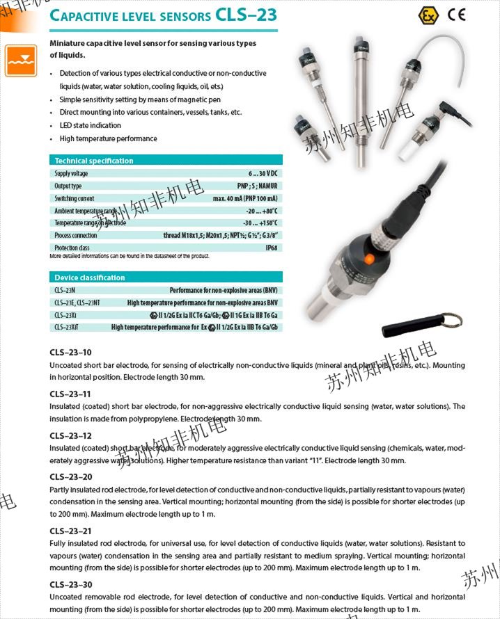 CLM-36N-12-G-I屬于捷克DINEL電容式液位傳感器系列,采用NPT螺紋連接方式,具有防爆功能(ExiaIICT4/T6),適用于工業(yè)自動(dòng)化領(lǐng)域的液位監(jiān)測。 ?