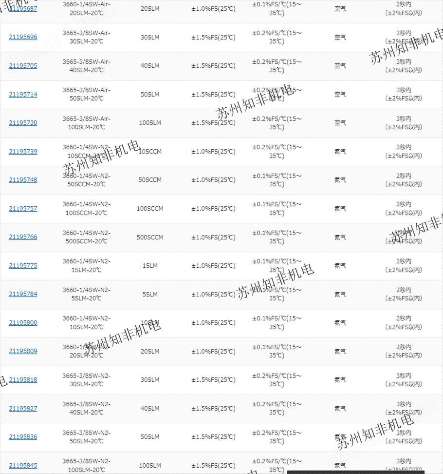 流量FS(N2換算):10SCCM-20SLPM(3660系列)